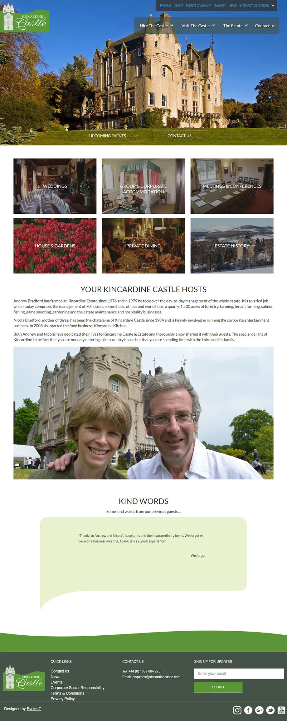 Kincardine castle had an old tired website and needed something to bring them into the 21st century. I worked with them to come up with a design that fit their requirements.